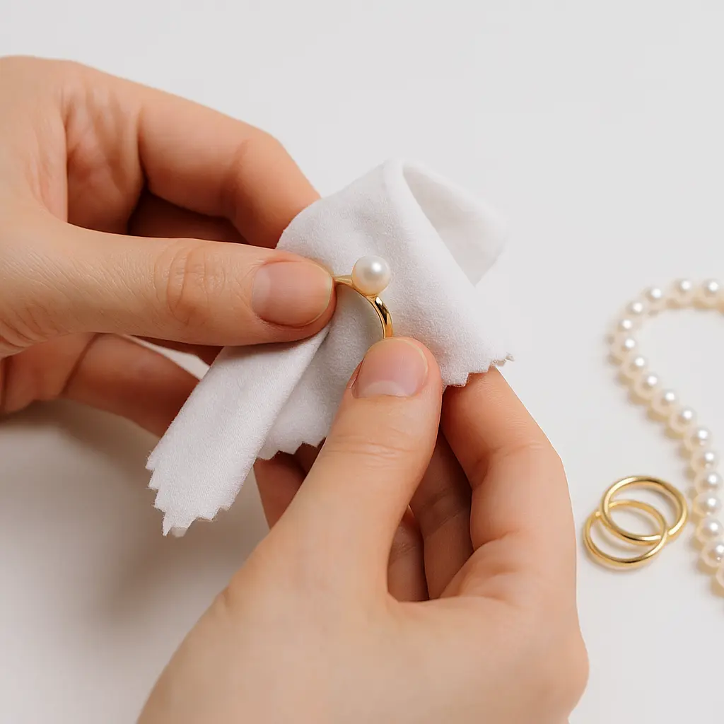 تمیز کردن صحیح، کلید حفظ درخشش طلا و مروارید است. برای این کار مراحل زیر را با دقت انجام دهید:
